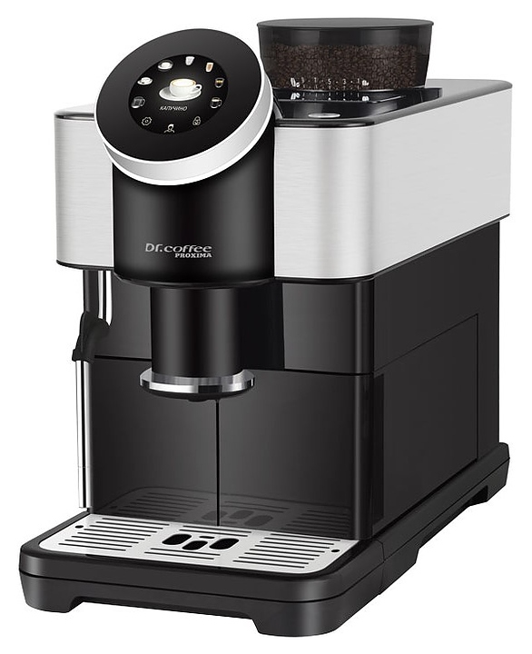 Кофемашина Dr.coffee Proxima H1 используется на предприятиях общественного питания и торговли для приготовления кофе и напитков на его основе. Модель оснащена инновационной системой вспенивания молока, русифицированным меню, интуитивно-понятным интерфейсом и сенсорным управлением. Корпус, контейнер для воды, несъемное заварное устройство и каплесборник выполнены из пластика, жернова – из керамики, трубка для подачи горячей воды - из металла. Комплектация: