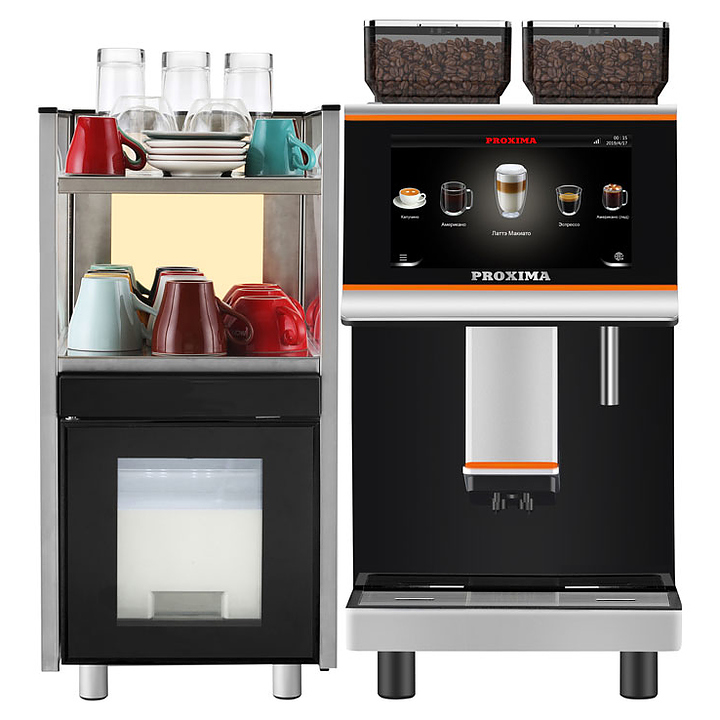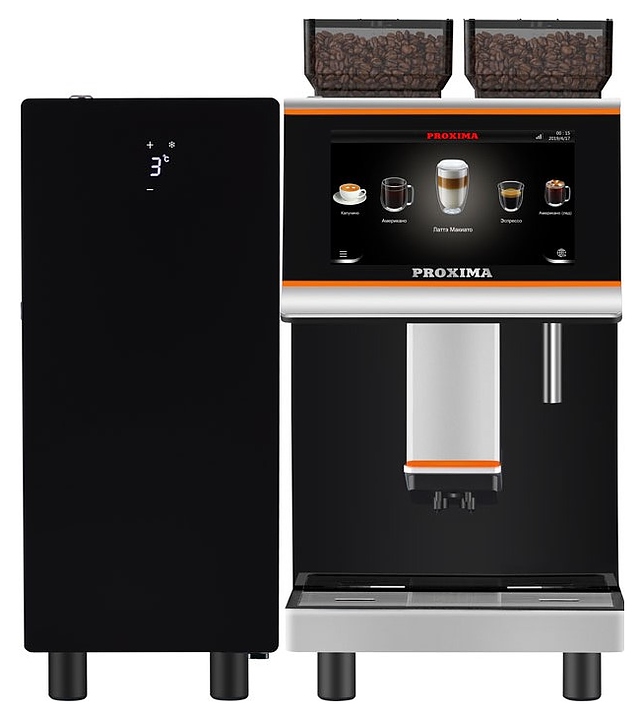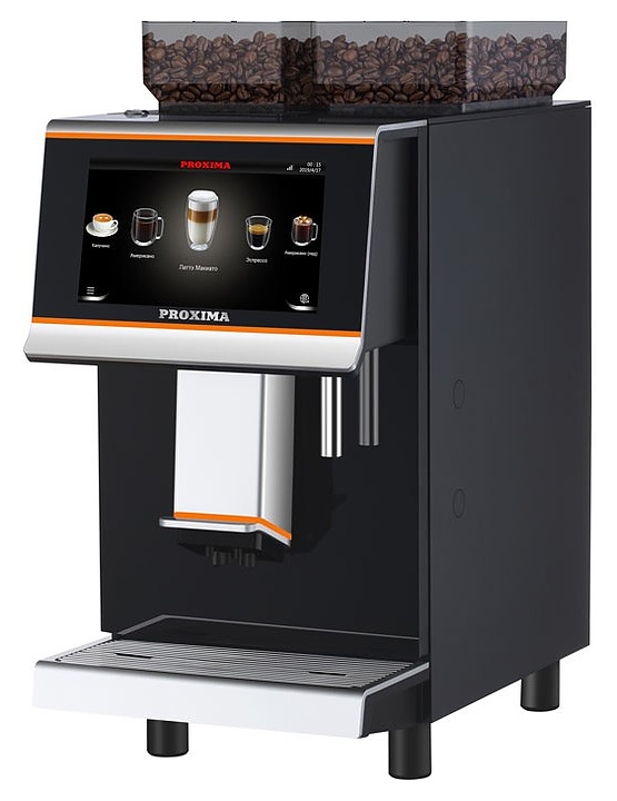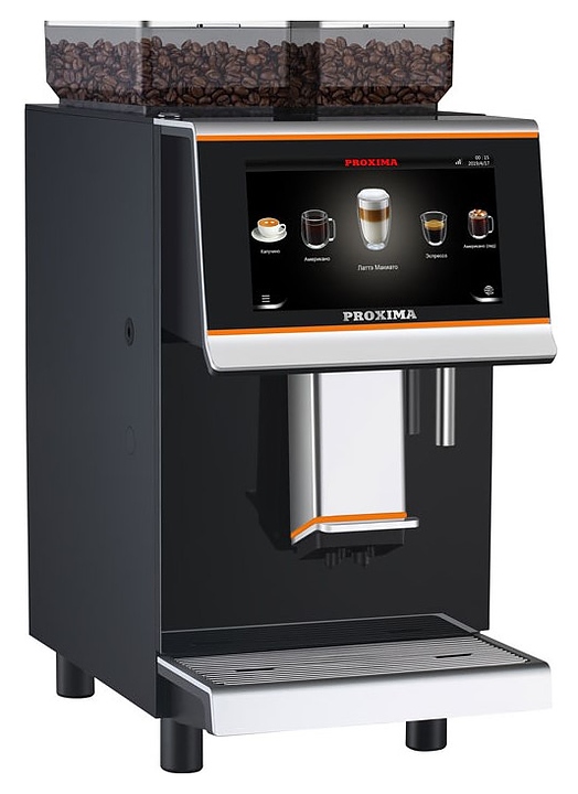 Кофемашина Dr.coffee Proxima F20 используется на предприятиях общественного питания и торговли для приготовления кофе и напитков на его основе. Модель оснащена 2 кофемолками с плоскими жерновами, встроенным клапаном для промывки молочной системы и сенсорным экраном с интуитивно-понятным русифицированным интерфейсом. Корпус, контейнер отработанного кофе и каплесборник выполнены из пластика, жернова – из керамики, трубка для подачи пара/горячей воды и съемное заварное устройство - из металла. Особенности: