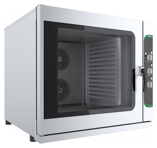 Пароконвектомат Пищевые технологии ПР-07М-Э применяется для обжаривания, приготовления на пару, бланширования, запекания и других видов тепловой обработки продуктов на предприятиях пищевой промышленности, общественного питания и торговли. Оборудование заменяет сразу несколько видов приборов: плиту, конвекционную печь, жарочный шкаф, духовку, опрокидывающуюся сковороду, пищеварочный котел, фритюрницу и др. Приготовленные в пароконвектомате блюда сохраняют все полезные вещества. Модель оснащена направляющими для гастроемкостей, лампой освещения, 2 ТЭНами, 2 вентиляторами и ручным таймером. Особенности:
