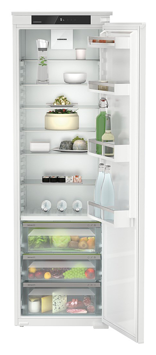Встраиваемый холодильник Liebherr IRBSe 5120 Plus BioFresh предназначен для охлаждения и длительного хранения продуктов и полуфабрикатов в частных домах, квартирах, отелях и офисах. Модель оснащена сенсорным управлением, жидкокристаллическим дисплеем и цифровой индикацией температуры. Полки выполнены из безопасного стекла, а рейлинги из нержавеющей стали. Холодильная камера: