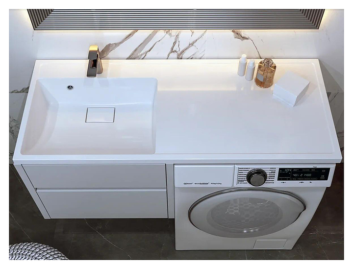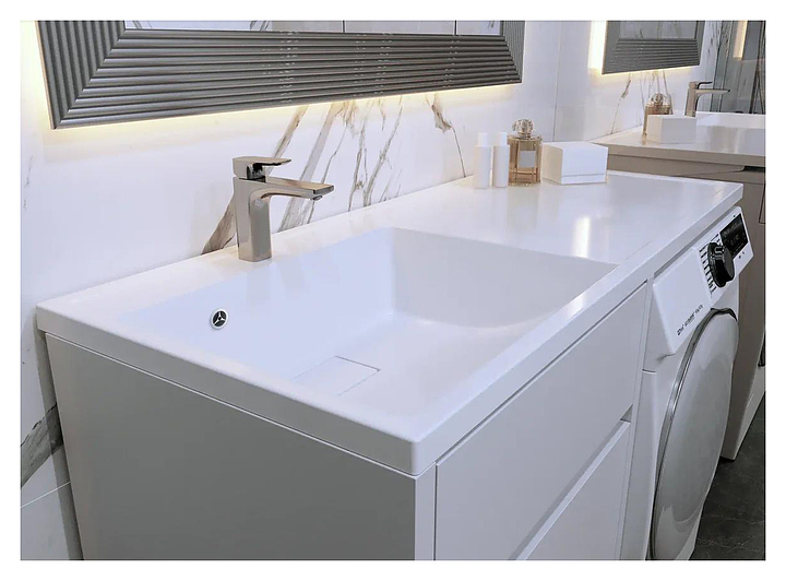 Левая раковина-столешница ULGRAN Paola Magenta 1200 L от популярного бренда дополнит интерьер ванной комнаты. Модель предназначена для установки над стиральной машиной и частично на тумбу, что экономит пространство в помещении. Раковина имеет широкую боковую поверхность для размещения аксессуаров. Изделие выполнено из прочного износостойкого литьевого мрамора и имеет специальное защитное покрытие гелькоут, которое сохраняет глянцевый блеск и цвет, выдерживает перепады температур и устойчив к коррозии. В комплект поставки входят выпуск, декоративный элемент, правый кронштейн и крепежи. Особенности: