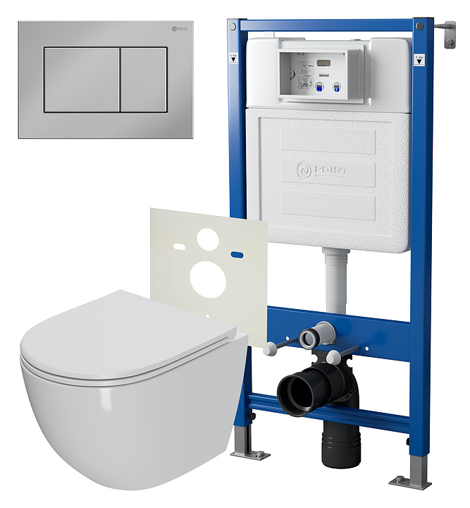Унитаз подвесной с инсталляцией и панелью смыва Point PN48057C белый, хром
