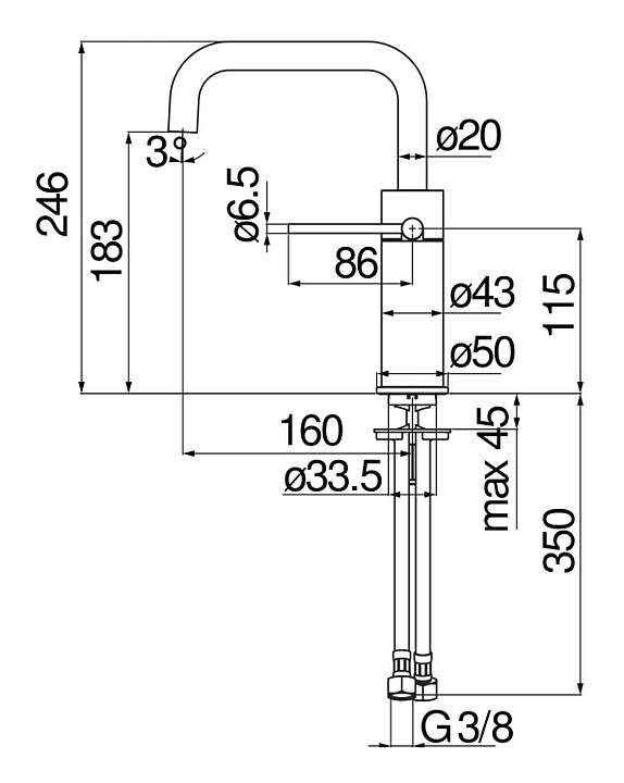 Смеситель для раковины NOBILI VELIS VE125118/3CR без донного клапана