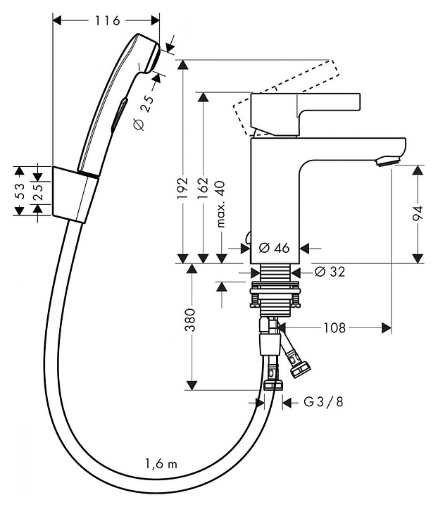 Смеситель для раковины с гигиеническим душем Hansgrohe HG Metris S 31160000 хром