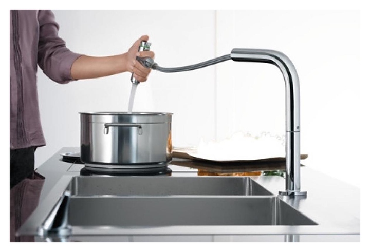 Кухонная мойка Hansgrohe HG C71-F660-08 43202800 предназначена для установки в частных домах, квартирах, офисах, отелях, гостиницах и на различных предприятиях для мытья столовых принадлежностей, посуды, приборов, инвентаря и продуктов питания. Модель оснащена высоким смесителем с выдвижным изливом с магнитной системой крепления душа MagFit, коробом sBox для тихого, плавного, безопасного перемещения шланга в кухонном шкафу, под столешницей и керамическим картриджем, обеспечивающим плавный ход рычага смесителя, контроль и точность при выборе напора и температуры воды. Изделие выполнено из нержавеющей стали, которая отличается практичностью и долговечностью использования в помещениях с повышенной влажностью. В комплект поставки входят смеситель для кухни, sBox и система слива с ручным управлением. Особенности: