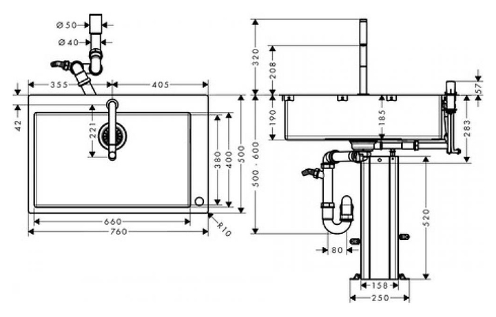 Мойка кухонная со смесителем Hansgrohe HG C71-F660-08 43202800 под сталь
