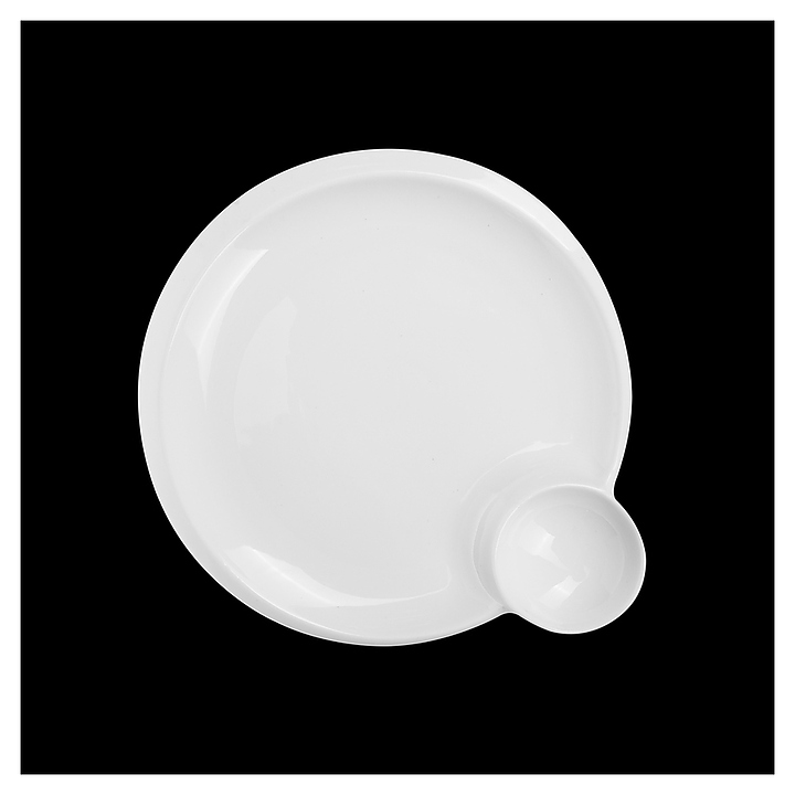 Тарелка для завтрака Chan Wave Classic ivory LQ-QD0528B предназначена для профессионального использования в ресторанах. Модель имеет круглую форму и оснащена емкостью для соуса. Посуда изготавливается из твердого фарфора приятного молочного оттенка. Утолщенные края препятствуют образованию сколов, а устойчивая к истиранию глазурь предотвращает появление темных полос от столовых приборов. Особенности: