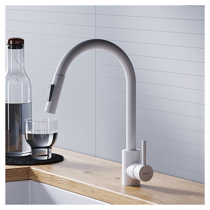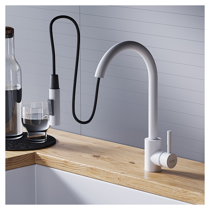 Смеситель для кухни Dorff Logic D3007533 с вытяжным изливом, белый