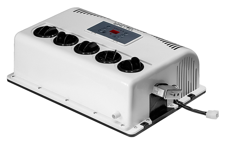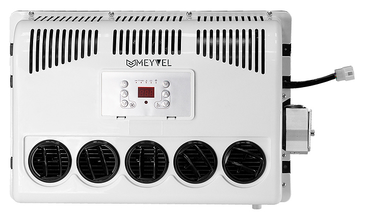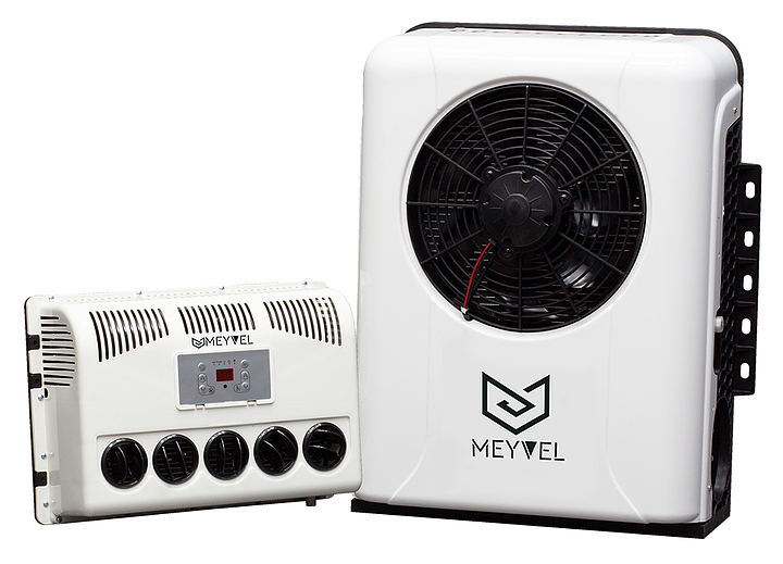 Автономный кондиционер MEYVEL AC-12BTS2000 предназначен для создания комфортных климатических условий в грузовом транспорте, спецтехнике, автобусах, трамваях, катерах и яхтах, а также в автодомах и кемперах. Модель состоит из наружного блока, внутреннего блока, электронной панели управления, предназначенной для полного контроля за параметрами кондиционера и переключения режимов и пульта дистанционного управления. Корпус выполнен из долговечного пластика. Особенности: