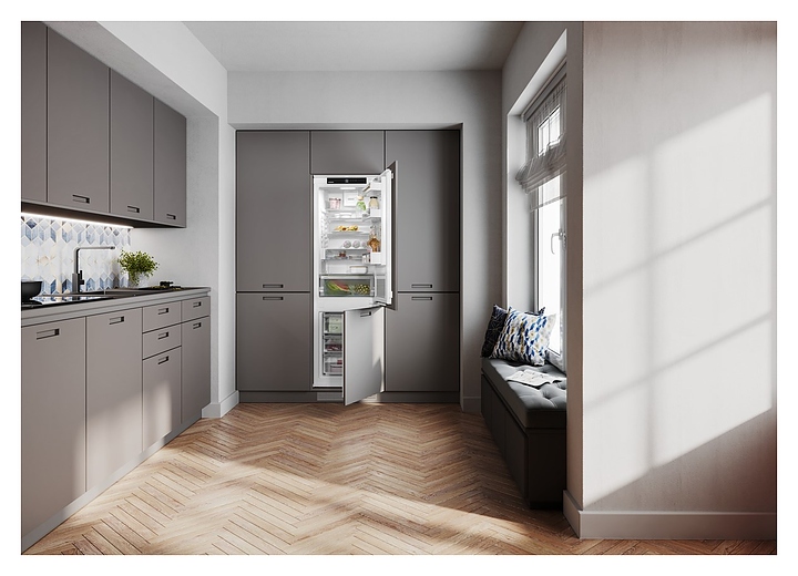 Встраиваемый холодильник Liebherr ICNe 5123 серии Plus предназначен для заморозки, охлаждения и длительного хранения продуктов и полуфабрикатов в частных домах, квартирах, отелях и офисах. Модель оснащена сенсорным экраном и цифровой индикацией температуры. Полки выполнены из закаленного стекла. Холодильная камера: