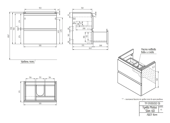 Тумба под раковину Cersanit MODUO SLIM 60 см