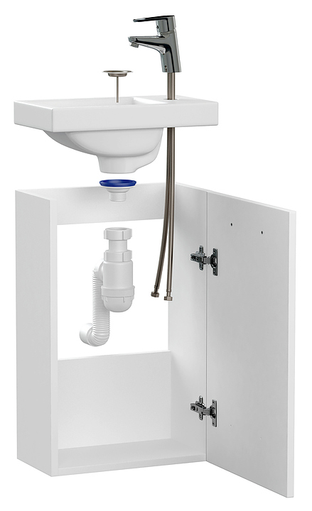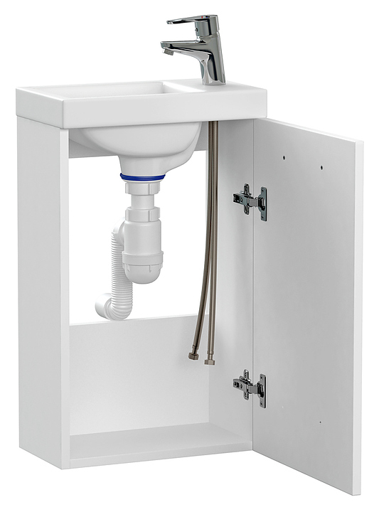 Тумба с раковиной Cersanit LARA 64228 дополнит интерьер ванной комнаты. Благодаря подвесной конструкции модель не занимает много места, что позволяет экономить пространство и облегчает уборку. Тумба оснащена распашной дверцей с доводчиком для плавной работы. Корпус выполнен из ЛДСП, фасад - из МДФ, тумба покрыта эмалью для защиты от повышенной влажности. Раковина изготовлена из фарфора, который обладает повышенной прочностью, устойчивостью к негативным внешним факторам, таким как грязь и запахи, а также способен долгое время сохранять идеальную белизну, смеситель - из латуни. В комплект поставки входят тумба под раковину, раковина COMO 40, смеситель CARI, сифон, кольцо перелива, подводка для воды, крепеж смесителя и ручка для тумбы. Особенности: