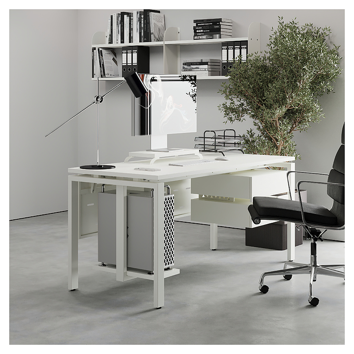 Офисный стол Кобор P-180/70 white/premium используется в офисных помещениях и кабинетах руководителей. Модель оснащена П-образными опорами. Каркас выполнен из металла, выкрашенного в цвет белый муар (RAL9016), столешница – из ламинированной древесно-стружечной плиты (ЛДСП) цвета белый премиум (W1000 ST9). Опции (заказываются отдельно):