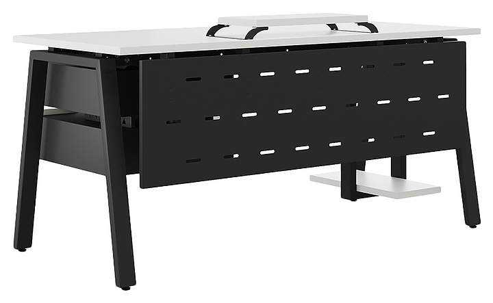 Офисный стол Кобор A-80/60 black/premium используется в офисных помещениях и кабинетах руководителей. Модель оснащена A-образными опорами. Каркас выполнен из металла, выкрашенного в цвет черный муар (RAL9005), столешница – из ламинированной древесно-стружечной плиты (ЛДСП) цвета белый премиум (W1000 S9). Опции (заказываются отдельно):