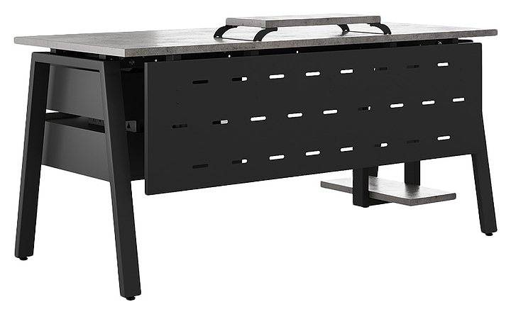 Офисный стол Кобор A-120/60 black/chicago используется в офисных помещениях и кабинетах руководителей. Модель оснащена A-образными опорами. Каркас выполнен из металла, выкрашенного в цвет черный муар (RAL9005), столешница – из ламинированной древесно-стружечной плиты (ЛДСП) цвета бетон чикаго (F186 ST9). Опции (заказываются отдельно):