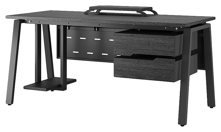 Офисный стол Кобор A-80/60 black/glazed используется в офисных помещениях и кабинетах руководителей. Модель оснащена A-образными опорами. Каркас выполнен из металла, выкрашенного в цвет черный муар (RAL9005), столешница – из ламинированной древесно-стружечной плиты (ЛДСП) цвета черный дуб (H3178 ST37). Опции (заказываются отдельно):