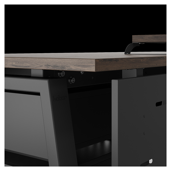 Офисный стол Кобор A-160/70 black/charlston используется в офисных помещениях и кабинетах руководителей. Модель оснащена A-образными опорами. Каркас выполнен из металла, выкрашенного в цвет черный муар (RAL9005), столешница – из ламинированной древесно-стружечной плиты (ЛДСП) цвета дуб чарльстон (H3154 ST36). Опции (заказываются отдельно):