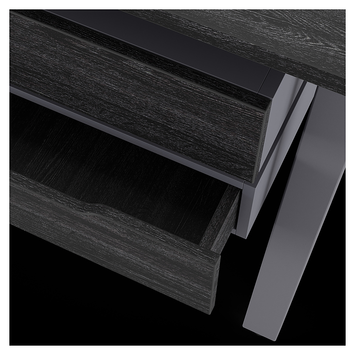 Офисный стол Кобор A-120/60 graphite/glazed используется в офисных помещениях и кабинетах руководителей. Модель оснащена A-образными опорами. Каркас выполнен из металла, выкрашенного в цвет графит муар (RAL7024), столешница – из ламинированной древесно-стружечной плиты (ЛДСП) цвета черный дуб (H3178 ST37). Опции (заказываются отдельно):