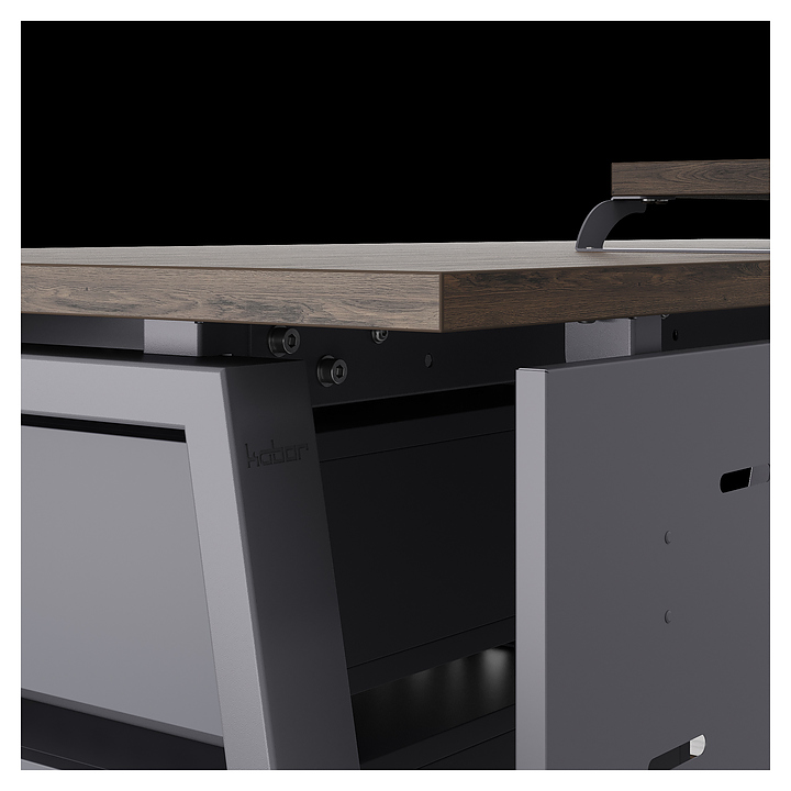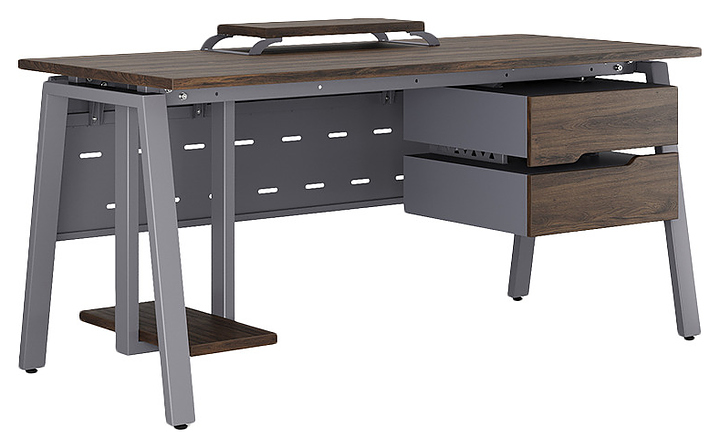 Офисный стол Кобор A-180/80 graphite/charlston используется в офисных помещениях и кабинетах руководителей. Модель оснащена A-образными опорами. Каркас выполнен из металла, выкрашенного в цвет графит муар (RAL7024), столешница – из ламинированной древесно-стружечной плиты (ЛДСП) цвета дуб чарльстон (H3154 ST36). Опции (заказываются отдельно):