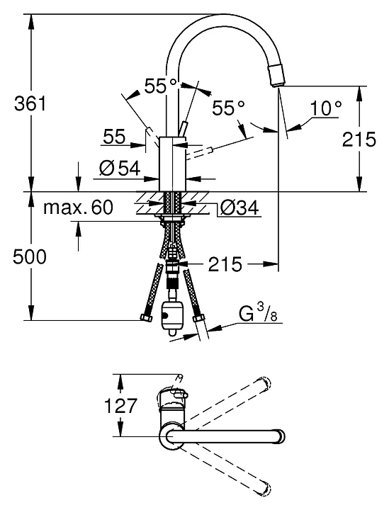 Мойка кухонная со смесителем Grohe K400 Concetto 31570SD0 хром