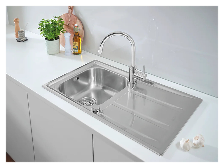 Кухонная мойка Grohe K400 Concetto 31570SD0 предназначена для установки в частных домах, квартирах, офисах, отелях, гостиницах и на различных предприятиях для мытья столовых принадлежностей, посуды, приборов, инвентаря и продуктов питания. Модель оснащена высоким смесителем с керамическим картриджем, обеспечивающим плавный ход рычага смесителя, контроль и точность при выборе напора и температуры воды. Изделие выполнено из нержавеющей стали, которая отличается практичностью и долговечностью использования в помещениях с повышенной влажностью. В комплект поставки входят мойка и смеситель для кухни. Особенности:
