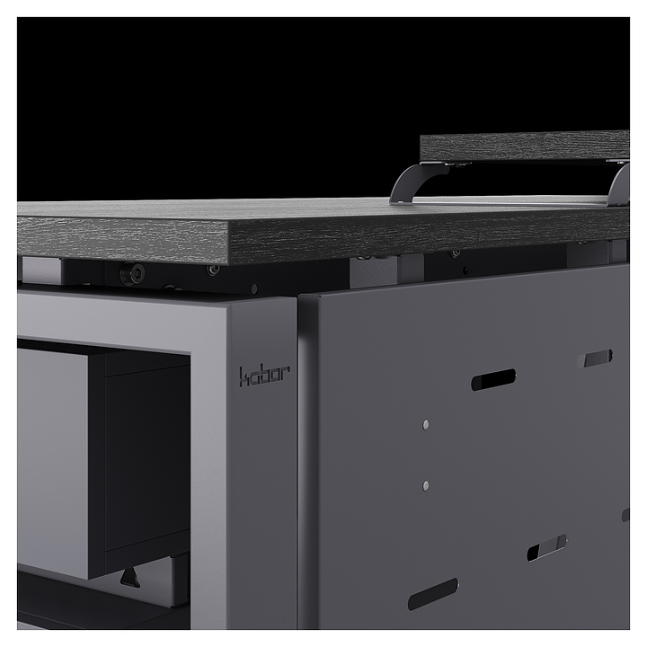 Офисный стол Кобор AB-120/80 graphite/glazed используется в офисных помещениях и кабинетах руководителей. Модель оснащена A-образными опорами со скошенными фронтальными сегментами. Каркас выполнен из металла, выкрашенного в цвет графит муар (RAL7024), столешница – из ламинированной древесно-стружечной плиты (ЛДСП) цвета черный дуб (H3178 ST37). Опции (заказываются отдельно):