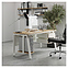Офисный стол Кобор AB-80/70 white/natural используется в офисных помещениях и кабинетах руководителей. Модель оснащена A-образными опорами со скошенными фронтальными сегментами. Каркас выполнен из металла, выкрашенного в цвет белый муар (RAL9016), столешница – из ламинированной древесно-стружечной плиты (ЛДСП) цвета натуральный дуб (H1180 ST37).