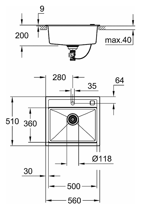 Мойка кухонная Grohe K700 31651AP0 56x 51 см, черный гранит (AP0)