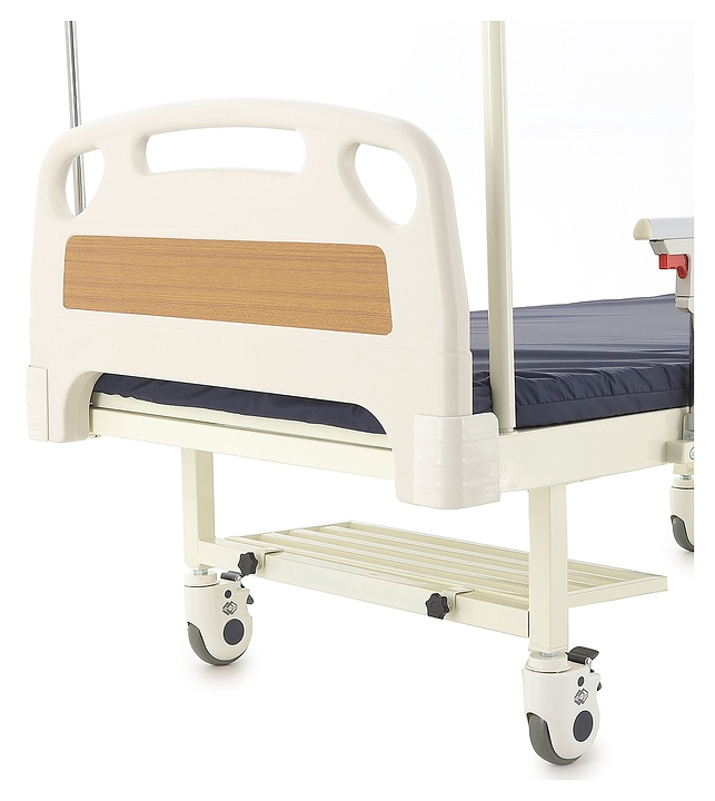Медицинская кровать механическая Med-Mos Е-17В (ABS) используется в учреждениях здравоохранения для более комфортного пребывания в больнице лежачих больных с проблемами опорно-двигательного аппарата и пациентов, которые проходят процесс реабилитации после перенесенных операций или тяжелых заболеваний. Модель оснащена 2 складными боковыми ограждениями, инфузионной стойкой, дугой для подтягивания, полкой для судна и 4 крючками для мочеприёмника. Каркас выполнен из стальных профильных труб различного сечения и длины, спинки - из ABS пластика с декоративной пленкой. Кровать поставляется с регистрационным удостоверением Минздрава РФ. В комплект поставки входит матрас. Особенности: