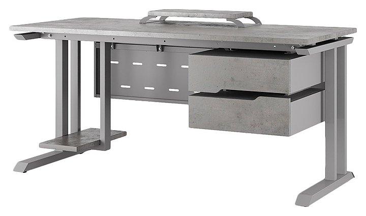 Офисный стол Кобор L1-120/70 aluminum/chicago используется в офисных помещениях и кабинетах руководителей. Модель оснащена L-образными опорами. Каркас выполнен из металла, выкрашенного в цвет алюминиевый металлик (RAL9006), столешница – из ламинированной древесно-стружечной плиты (ЛДСП) цвета бетон чикаго (F186 ST9). Опции (заказываются отдельно):