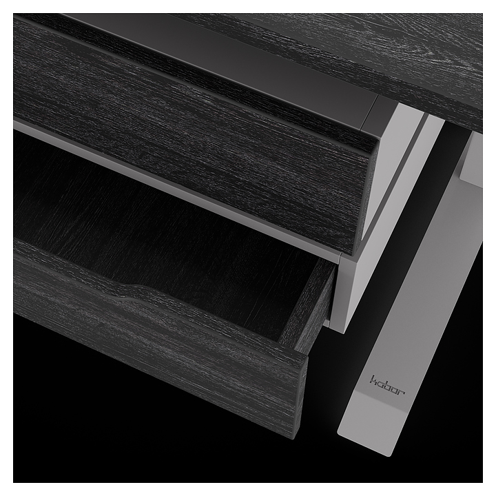 Офисный стол Кобор L1-160/80 aluminum/glazed используется в офисных помещениях и кабинетах руководителей. Модель оснащена L-образными опорами. Каркас выполнен из металла, выкрашенного в цвет алюминиевый металлик (RAL9006), столешница – из ламинированной древесно-стружечной плиты (ЛДСП) цвета черный дуб (H3178 ST37). Опции (заказываются отдельно):