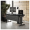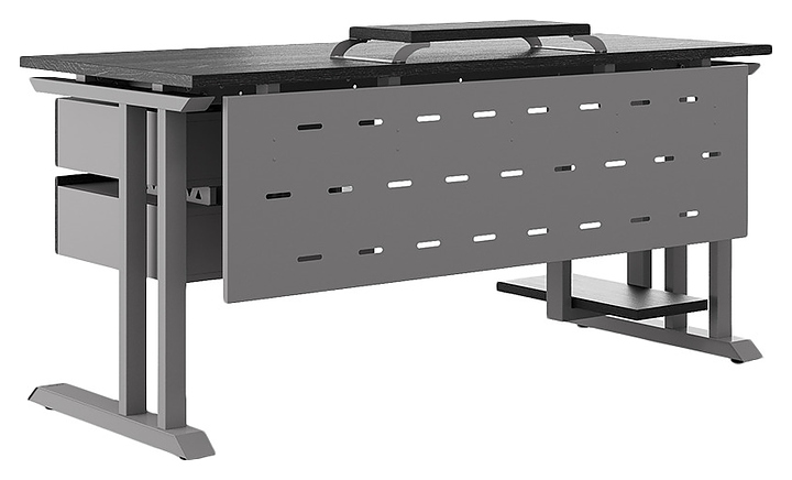 Офисный стол Кобор L1-180/80 aluminum/glazed используется в офисных помещениях и кабинетах руководителей. Модель оснащена L-образными опорами. Каркас выполнен из металла, выкрашенного в цвет алюминиевый металлик (RAL9006), столешница – из ламинированной древесно-стружечной плиты (ЛДСП) цвета черный дуб (H3178 ST37). Опции (заказываются отдельно):
