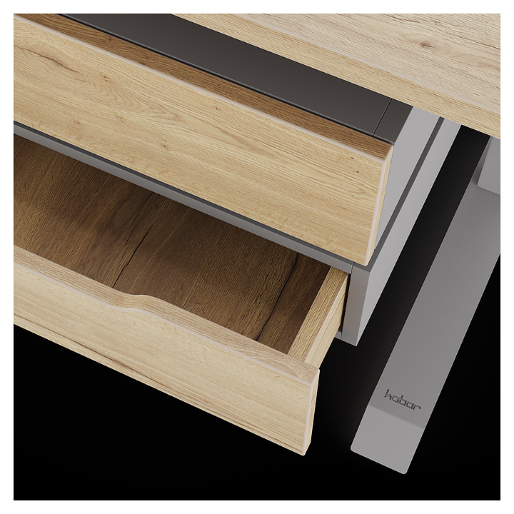 Офисный стол Кобор L1-140/60 aluminum/natural используется в офисных помещениях и кабинетах руководителей. Модель оснащена L-образными опорами. Каркас выполнен из металла, выкрашенного в цвет алюминиевый металлик (RAL9006), столешница – из ламинированной древесно-стружечной плиты (ЛДСП) цвета натуральный дуб (H1180 ST37). Опции (заказываются отдельно):