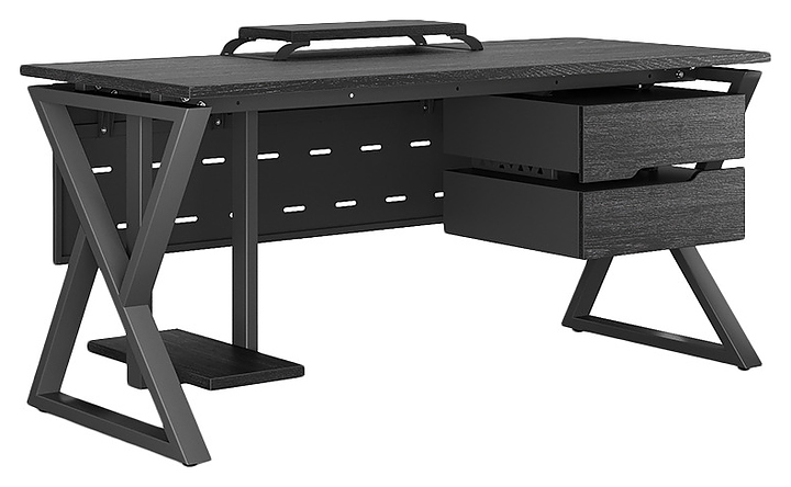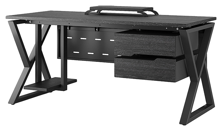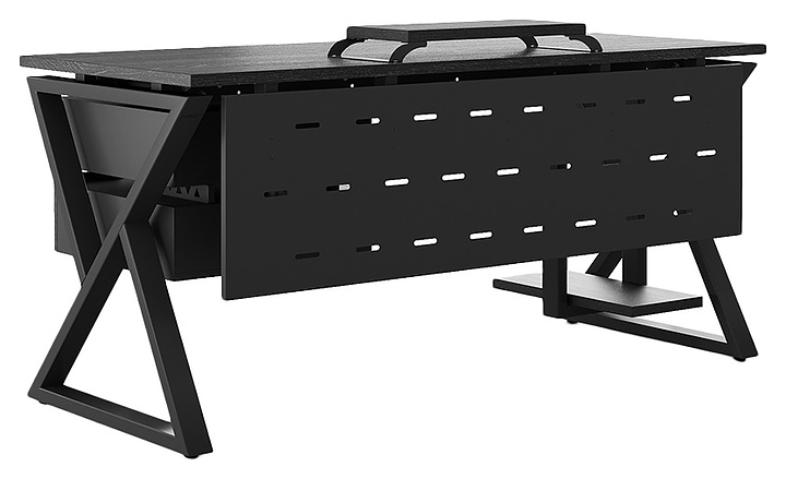 Офисный стол Кобор W-160/60 black/glazed используется в офисных помещениях и кабинетах руководителей. Модель оснащена W-образными опорами. Каркас выполнен из металла, выкрашенного в цвет черный муар (RAL9005), столешница – из ламинированной древесно-стружечной плиты (ЛДСП) цвета черный дуб (H3178 ST37). Опции (заказываются отдельно):