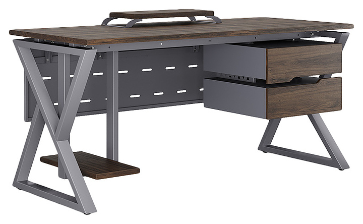 Офисный стол Кобор W-80/60 graphite/charlston используется в офисных помещениях и кабинетах руководителей. Модель оснащена W-образными опорами. Каркас выполнен из металла, выкрашенного в цвет графит муар (RAL7024), столешница – из ламинированной древесно-стружечной плиты (ЛДСП) цвета дуб чарльстон (H3154 ST36). Опции (заказываются отдельно):