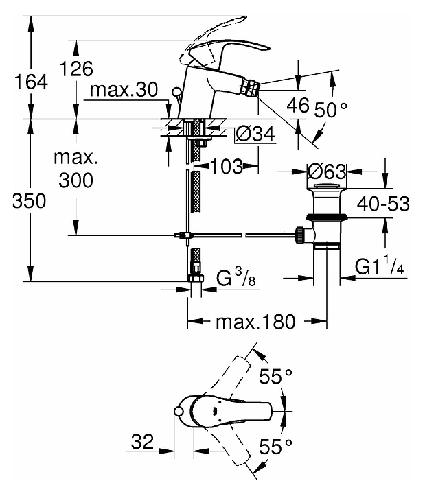 Смеситель для биде Grohe Eurosmart New 32929002 с донным клапаном, хром