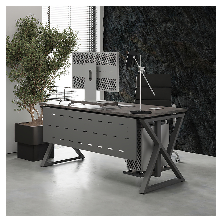 Офисный стол Кобор W-180/80 aluminum/chicago используется в офисных помещениях и кабинетах руководителей. Модель оснащена W-образными опорами. Каркас выполнен из металла, выкрашенного в цвет алюминиевый металлик (RAL9006), столешница – из ламинированной древесно-стружечной плиты (ЛДСП) цвета бетон чикаго (F186 ST9). Опции (заказываются отдельно):