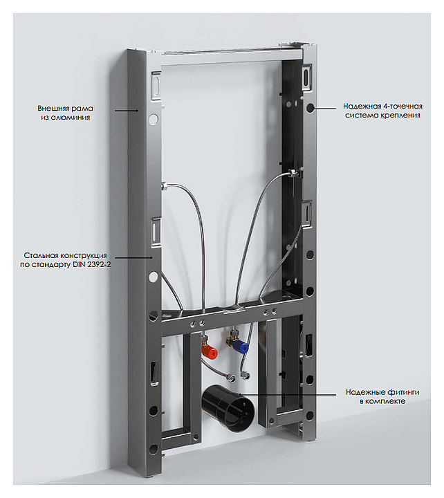 Система инсталляции Wasserkraft Naab 86BDT.050.BL предназначена для установки подвесных биде. Внешняя рама выполнена из алюминия, съемная лицевая панель - из закаленного стекла. Комплектация: