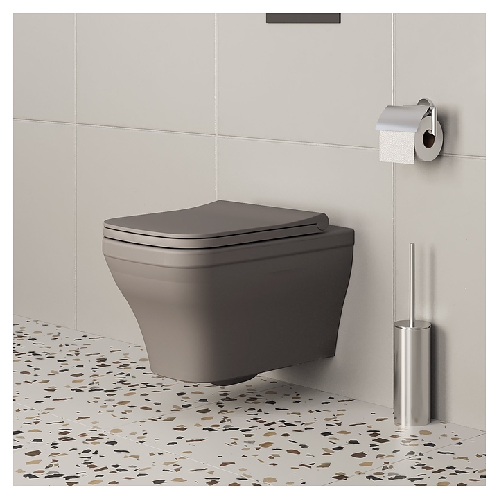 Унитаз подвесной с крышкой-сиденьем Ambassador Benefit 203T20301R-202T20301S серый матовый