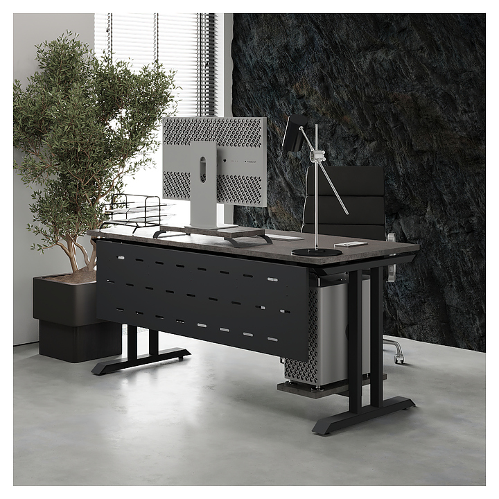 Офисный стол Кобор T-120/70 black/chicago используется в офисных помещениях и кабинетах руководителей. Модель оснащена T-образными опорами. Каркас выполнен из металла, выкрашенного в цвет черный муар (RAL9005), столешница – из ламинированной древесно-стружечной плиты (ЛДСП) цвета бетон чикаго (F186 ST9). Опции (заказываются отдельно):