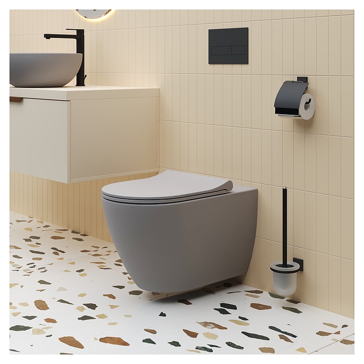 Унитаз подвесной с крышкой-сиденьем Ambassador Queen 113T20301R-112T20301S серый матовый