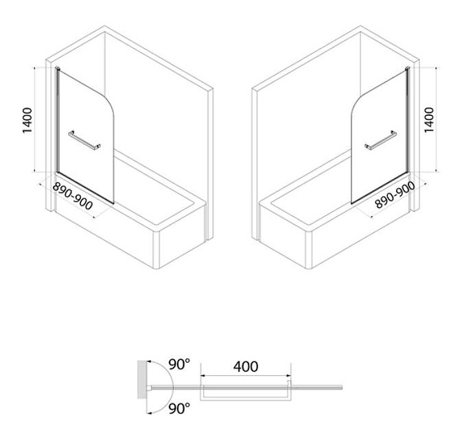 Шторка на ванну IDDIS Ray RAY6CS9i90 90х140 см
