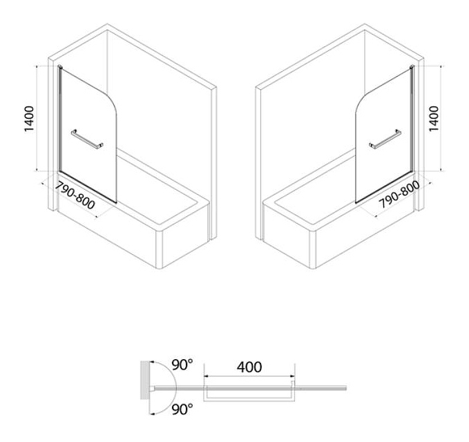 Шторка на ванну IDDIS Ray RAY6CS8i90 80х140 см