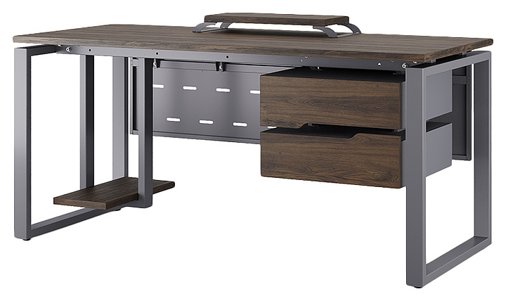 Офисный стол Кобор O1-180/60 graphite/charlston используется в офисных помещениях и кабинетах руководителей. Модель оснащена O-образными опорами. Каркас выполнен из металла, выкрашенного в цвет графит муар (RAL7024), столешница – из ламинированной древесно-стружечной плиты (ЛДСП) цвета дуб чарльстон (H3154 ST36). Опции (заказываются отдельно):