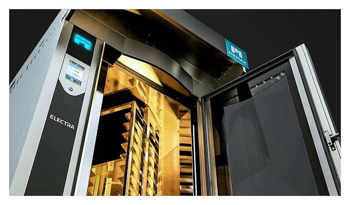Ротационная печь Memak ELECTRA-E применяется на профессиональных кухнях пекарен и кондитерских для выпекания разнообразных хлеба, булочек, кексов, коржей, бисквитов, печенья, пироженых, круассанов и других изделий из теста. Модель оснащена электромеханической панелью управления, высокоэффективными парогенераторами, системой автоматического контроля пара с паровым клапаном. Внутренняя и внешняя поверхности выполнены из высококачественной нержавеющей стали AISI 304, дверца - из стальной рамы и закаленного стекла, предотвращающего потерю тепла. Особенности: