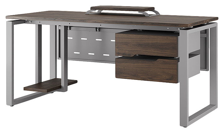 Офисный стол Кобор O1-140/80 aluminum/charlston используется в офисных помещениях и кабинетах руководителей. Модель оснащена O-образными опорами. Каркас выполнен из металла, выкрашенного в цвет алюминиевый металлик (RAL9006), столешница – из ламинированной древесно-стружечной плиты (ЛДСП) цвета дуб чарльстон (H3154 ST36). Опции (заказываются отдельно):