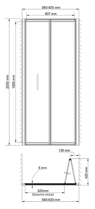 Душевая дверь Wasserkraft Weser 78F04 обеспечит хорошую герметичность от разбрызгивания, стекания и протечки воды в ванной комнате. Изделие состоит из распашной двери с силиконовым уплотнителем и магнитным замком, а также фиксированной панели. Покрытие WasserSchutz предотвращает образование известкового налета и прочих загрязнений, облегчает уход и поддерживает чистоту. Полотно двери выполнено из прочного закаленного стекла, складной механизм - из нержвеющей стали, ручка - из сплава металлов, профиль - из анодированного алюминия с покрытием порошоковой краской. В комплект поставки входит набор быстрого монтажа. Поддон в комплект поставки не входит и приобретается отдельно. Особенности: