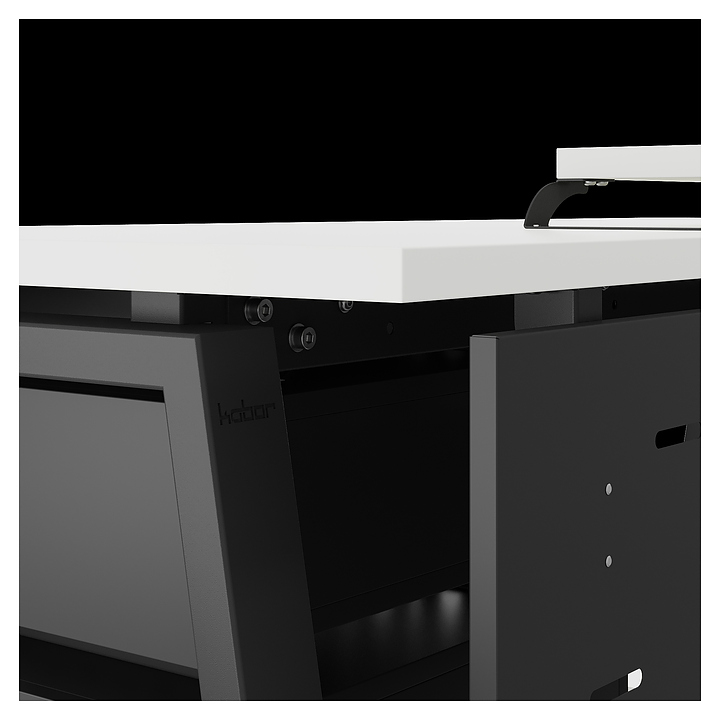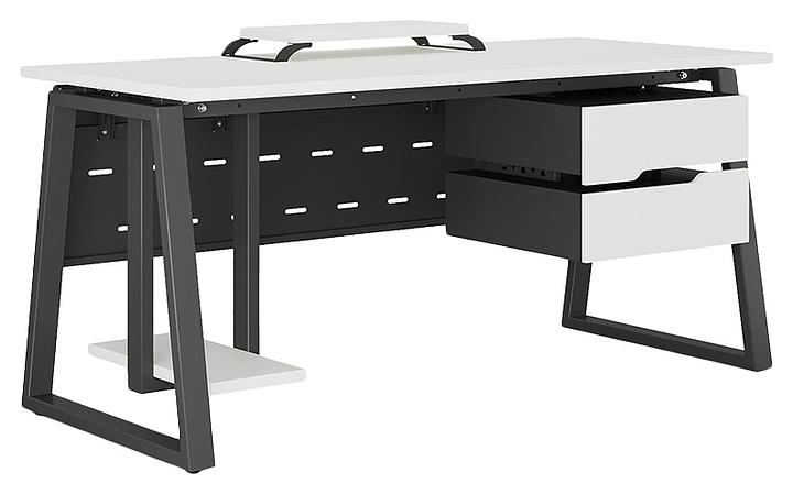 Офисный стол Кобор TR-140/80 black/premium используется в офисных помещениях и кабинетах руководителей. Модель оснащена опорами в форме трапеции. Каркас выполнен из металла, выкрашенного в цвет черный муар (RAL9005), столешница – из ламинированной древесно-стружечной плиты (ЛДСП) цвета белый премиум (W1000 S9). Опции (заказываются отдельно):