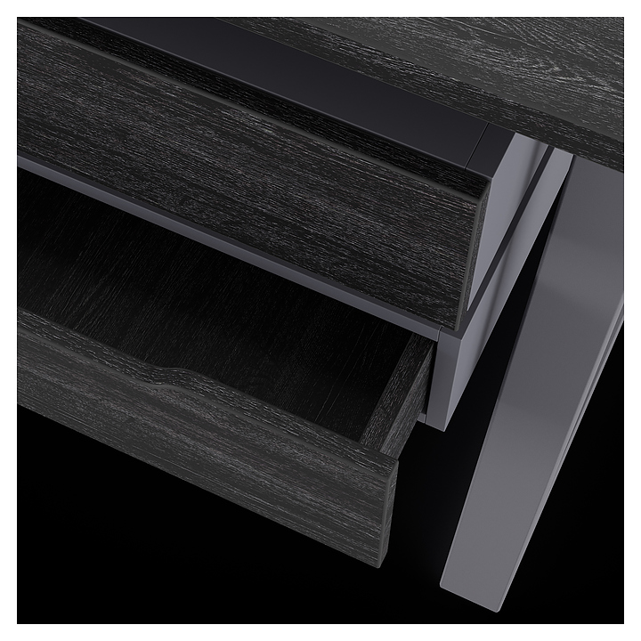 Офисный стол Кобор TR-140/70 graphite/glazed используется в офисных помещениях и кабинетах руководителей. Модель оснащена опорами в форме трапеции. Каркас выполнен из металла, выкрашенного в цвет графит муар (RAL7024), столешница – из ламинированной древесно-стружечной плиты (ЛДСП) цвета черный дуб (H3178 ST37). Опции (заказываются отдельно):