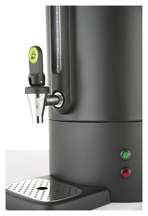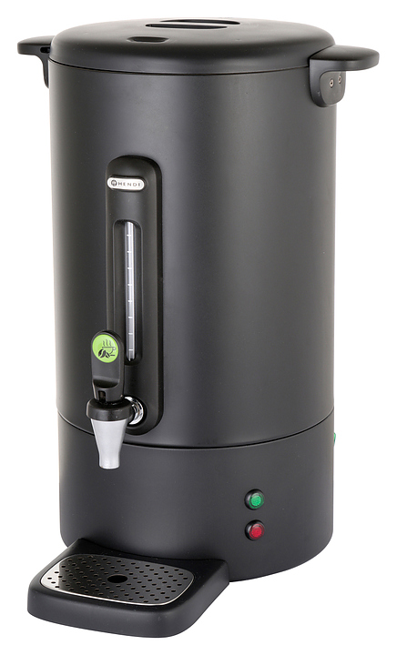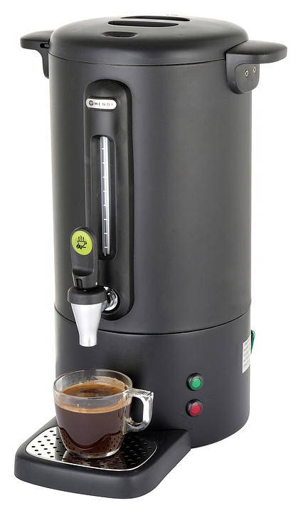 Кофеварка-перколятор HENDI Design by Bronwasser 211489 используется на предприятиях общественного питания и торговли, в офисах и гостиницах для приготовления кофе из молотых зерен. Прибор оснащен защитой от перегрева и металлическим фильтром. Модель оснащена фильтром для кофе грубого помола, световым индикатором завершения нагрева и необходимости удаления накипи, краном, ручками для удобства переноски и крышкой. Одностенный корпус выполнен из нержавеющей стали, ручки и крышка - из полипропилена. Особенности:
